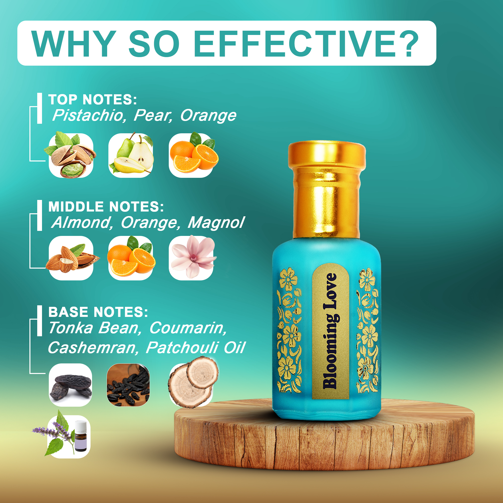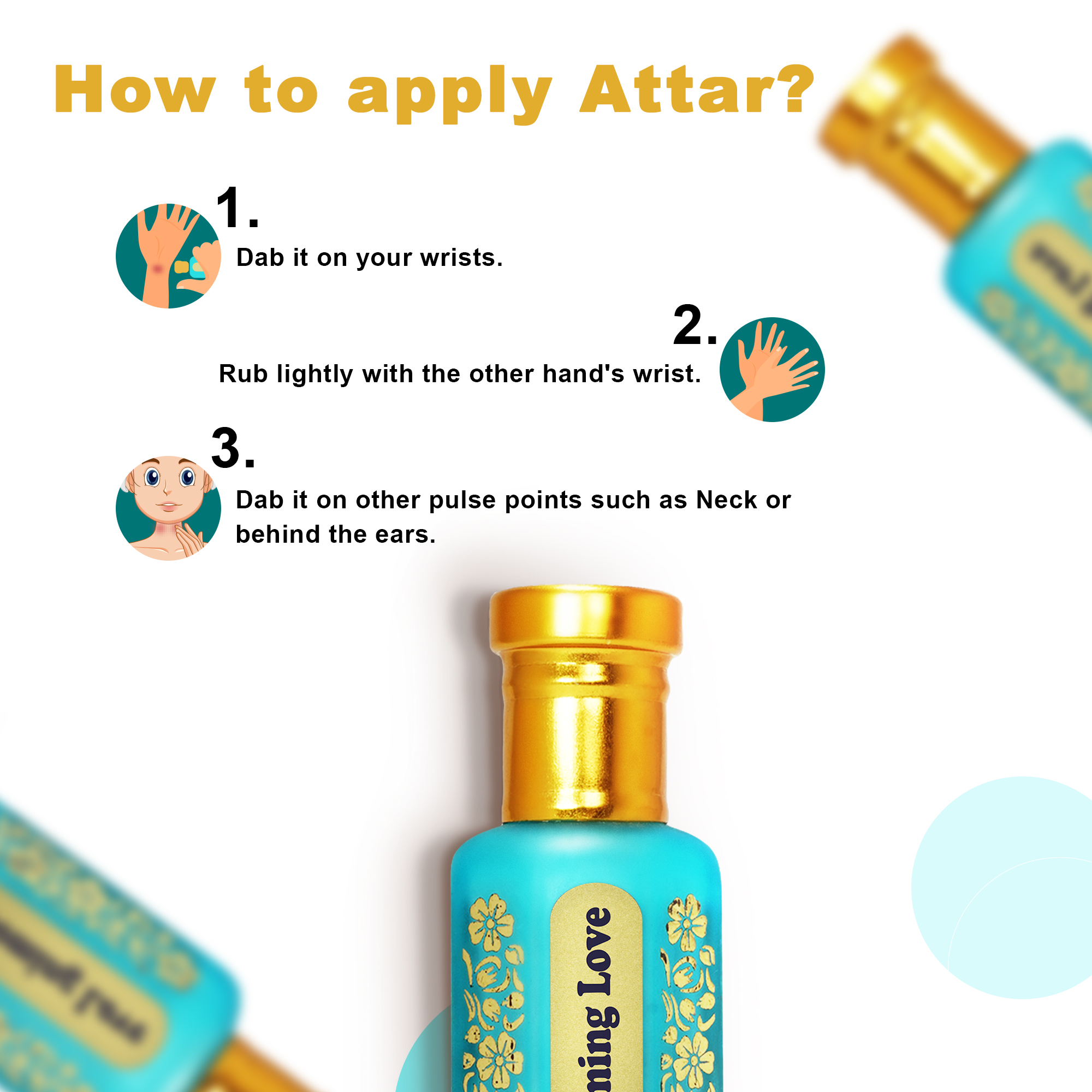 Our long-lasting attar keeps you enveloped in blooming love for up to 12 hours, ensuring you feel fresh and alluring all day. The convenient 12ml roll-on bottle is perfect for on-the-go application, making it an ideal companion for your daily routine. Indulge in this exquisite fragrance and let it accompany you wherever you go!